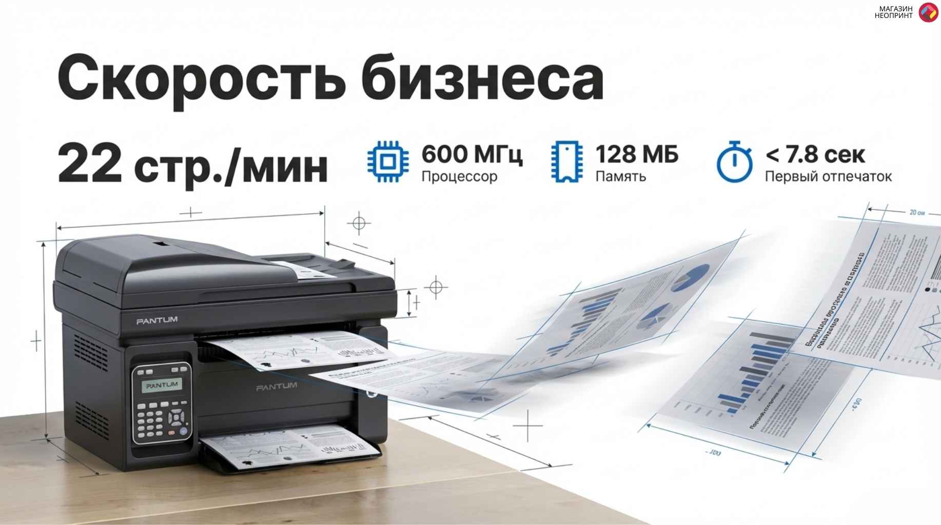 | Скорость печати | 22 стр/мин (ч/б А4) |