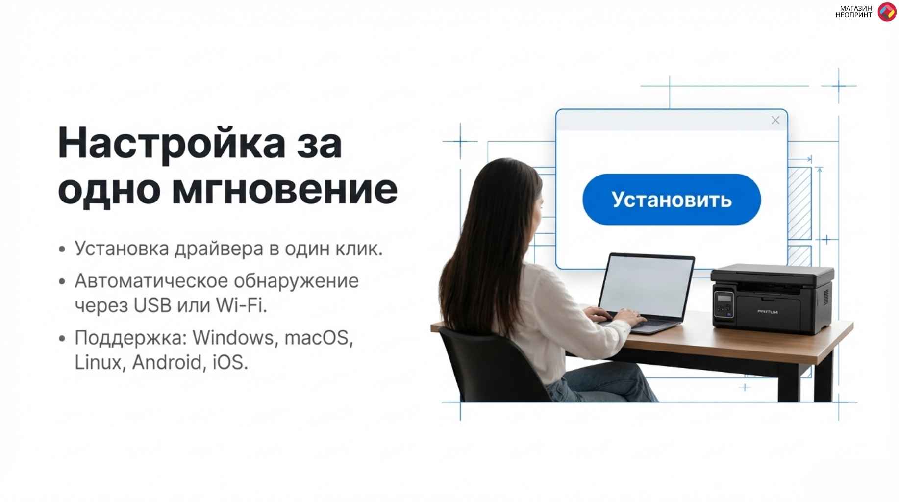 Купил, установил драйвера с официального сайта, диск не стал использовать так как там по отзывам кривые дрова, а так всё установил настроил и принтер работает в домашней сети wi fi, в общем цена- качество просто огонь, в общем товар очень доволен