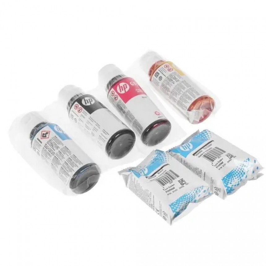 Огромный запас чернил и минимальная стоимость печати. Стартового набора флаконов хватает на 8000 цветных или 6000 ч/б страниц — клапан на флаконах HP исключает проливание при заправке.